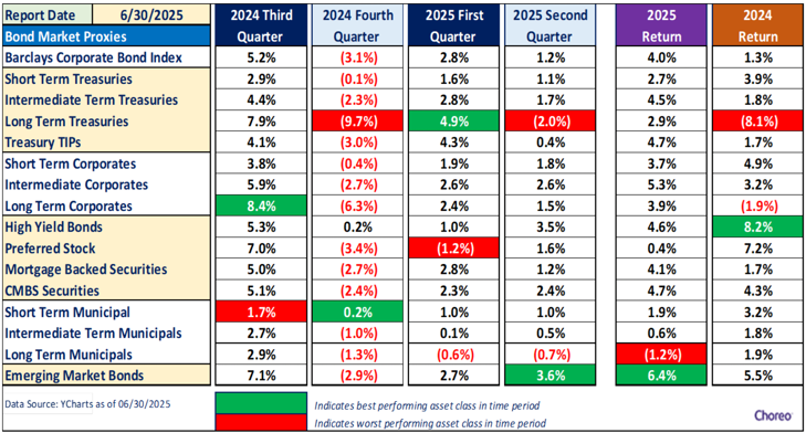 Entering the back half of 2025, one thing is certain: investors should expect uncertainty. Great movies usually have a great plot twist, and we expect 2025 will as well. Markets may not like the unknown, but until a reliable time machine exists, we anticipate that this will be the normal course of business. In the meantime, we hope you’re enjoying summer fun with your family and friends (and watching an actual Blockbuster movie!) As always, please reach out to your Choreo Advisor with any questions or comments.