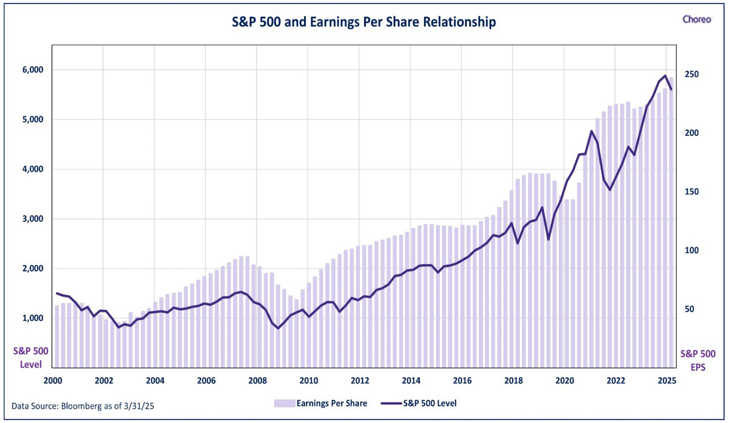 After Iranian missiles targeted U.S. military bases in the Middle East, government layoffs, and tariff uncertainty, many investors have wondered how U.S. markets have shown such resilience this year. Some of the usual headwinds persist: inflation uncertainty, Fed policy, geopolitical tensions, and mixed economic data. New challenges emerged, including escalating trade tensions and a new tax and spending bill out of Washington that’s expected to add trillions to an already ballooning debt load. Markets often react to short-term noise, but over time, corporate profits can have a major impact on prices. Profits continue to be a bright spot and a source of comfort for investors, as seen in the graph below.