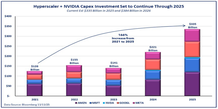 Since November 2022, when OpenAI launched ChatGPT, artificial intelligence has moved from curiosity to a global priority. It now sits at the center of geopolitical strategy, corporate budgets, and large-scale infrastructure planning. The resulting investment boom has been extraordinary: major cloud providers like Google, Amazon, and Nvidia have increased capital spending by 166% since 2021, adding more than $200 billion of new investment.