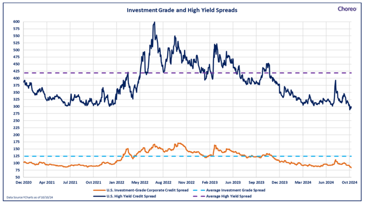 - The Federal Reserve (the “Fed”) officially ended the multi-year cycle of rate hikes with the first round of rate cuts in four years during the month of September. The future path of additional cuts remains uncertain, but more reductions are expected by market participants.