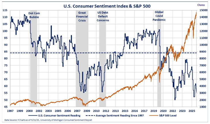 Fact patterns do not always lead to anticipated results. Market uncertainty has reigned in 2025. Shifting trade policy led to an S&P 500 that had fallen 18.9% from its highs by early April, only to recover over the next several months to new highs. It may feel surprising, especially in light of the steady stream of headlines that seem to argue for challenging equity outcomes. Yet markets have a history of defying consensus. They “climb a wall of worry” - often delivering stronger results precisely when confidence is weakest or the outlook is most uncertain.